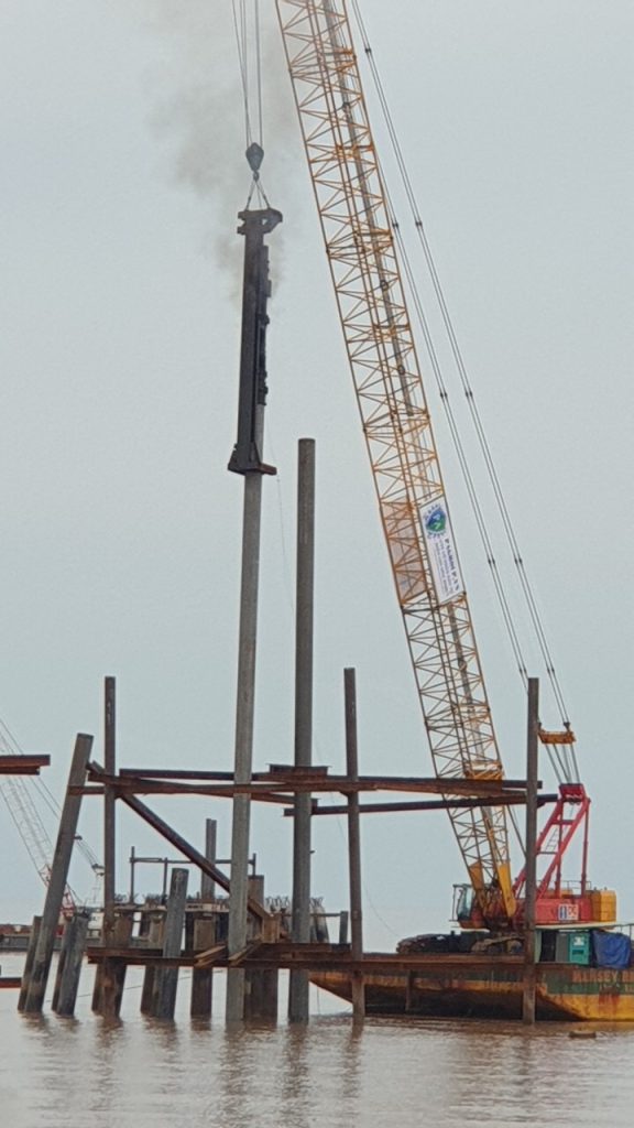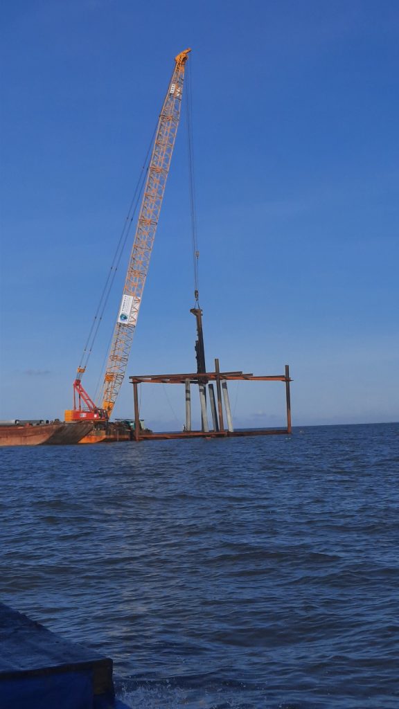 - Barge/crane: 1800 tons/150 ton, diesel hammer 10 ton…